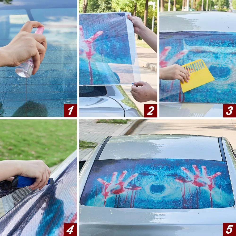 Miếng dán decan Vinyl 3D trong suốt trang trí kính chắn gió phía sau xe ô tô 135x36cm cao cấp
